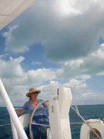 I've learned it is very hard to paint with a tiny watercolor set on a rocking boat...but I promise to post some images from my watercolor journal.